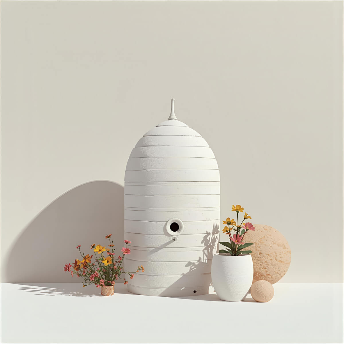 Le arnie sono realizzate in stampa 3D utilizzando materiali bio-based e completamente sostenibili, progettate per integrarsi armoniosamente nel paesaggio urbano e offrire rifugi sicuri agli insetti impollinatori.